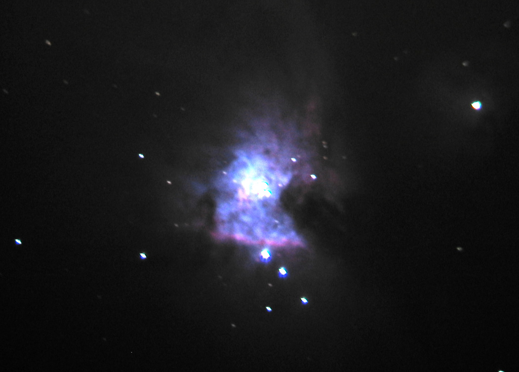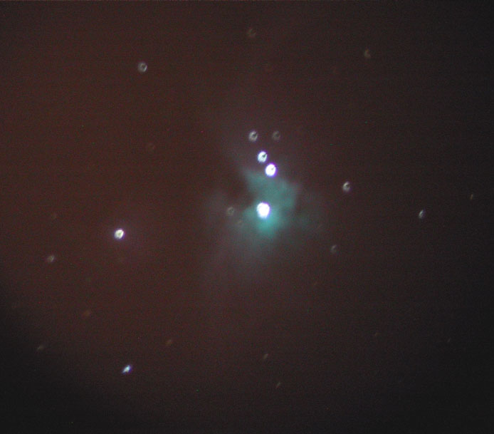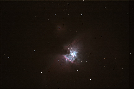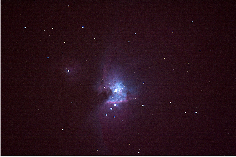 I got a new camera yesterday: Canon EOS 20D SLR. Tonight we had a bit of clear sky so I tried to get the Orion Nebula. I was partially successful before the clouds rolled in and the telescope fogged over.