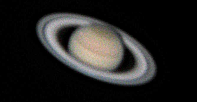 Saturn 11 frames stacked. I tried Keith's Image Stacker's "2x resampling" feature to make the image larger, and heavily overprocessed. 9:04pm PST