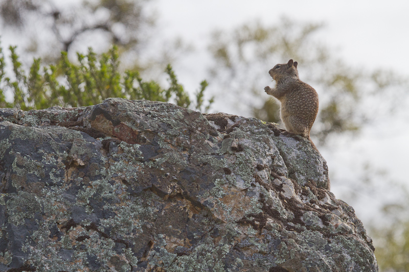 Of course, we don't see just birds when we go on Birdathons. Mammals, lizards, snakes and insects are all out there waiting to be seen. Here's a ground squirrel, nibbling breakfast on a lichen-covered rock.