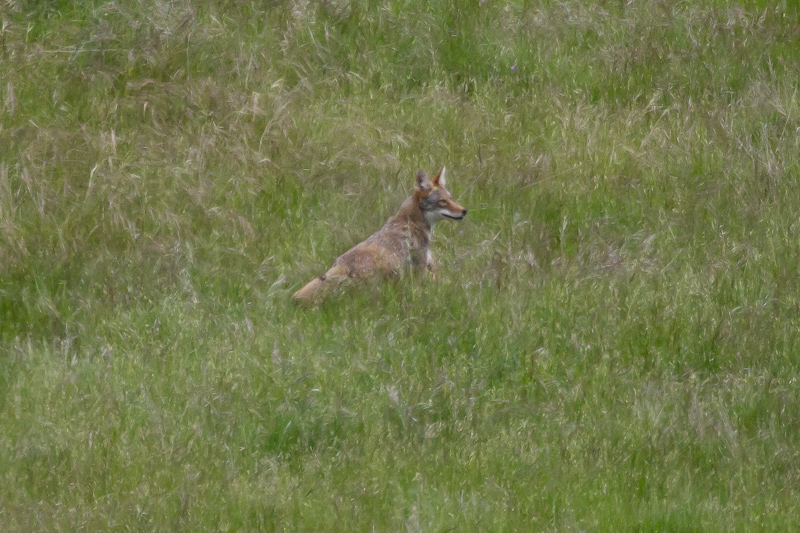 On the way out of Grant Ranch, heading down to Lake Cunningham, we stopped to identify a bird on a wire. It turned out to be another bluebird, but in the grassy hills we found a coyote leaping and running.