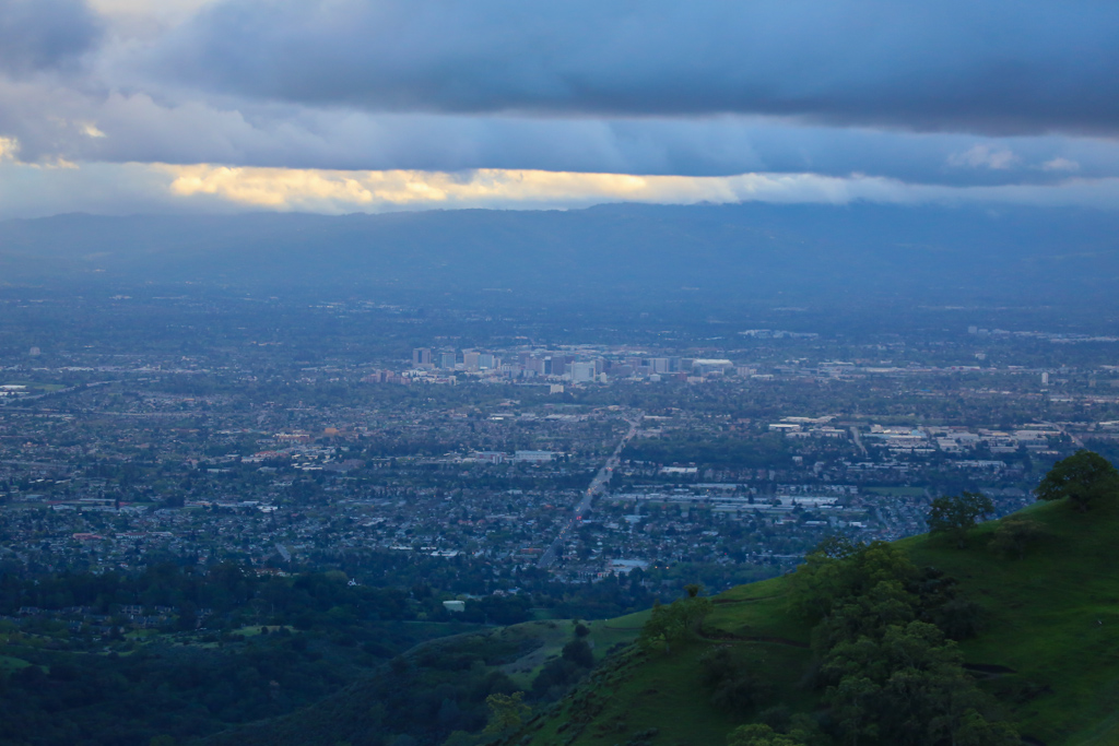 We hiked back down to the parking lot. The rain had let up again, so we decided to risk changing into our spare sets of dry shoes and clothes before heading out to the baylands.