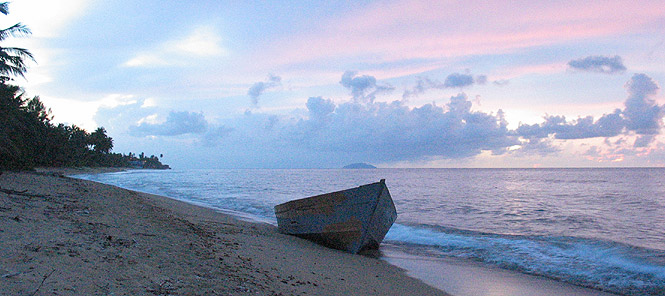 An abandoned boat, likely used by refugees from the Dominican Republic to cross the Mona Channel and land here