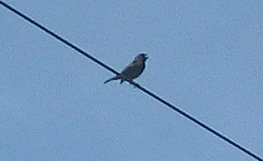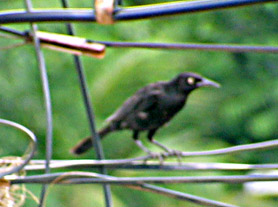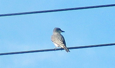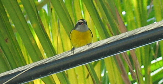 Our front yard has two Hibiscus bushes, a casuarina bush, several small potted plants and is bordered to the west by date and coconut palms in the neighbor's yard. A telephone pole stands outside the northeast corner of the yard. The front yard supports a pair of Bananaquits that appear to be nesting. On the power pole is the nest of a Gray Kingbird. The Kingbird pair was actively feeding several babies on our first full day here, but after two days the nest was empty, apparently from predation, and the Kingbirds, though still hanging out and feeding in front of our house, no longer approached the nest site. A male and female pair of Antillean Mango hummingbirds feed periodically at the red hibiscus. The female tends to stay approximately five minutes at a time; the male appears less frequently. Common Ground-Doves occasionally forage near our front yard. Zenaida Doves, White-winged Doves and Greater Antillean Grackles sit on the power lines.