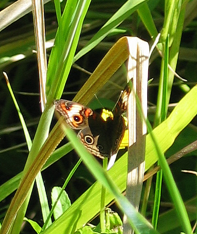 To the east is a house with various plants including a broad-leaved Milkweed hosting a single monarch caterpillar. Monarch butterflies have flown through the yard many times. Bright yellow sulphur butterflies have flown through the front and back yards.